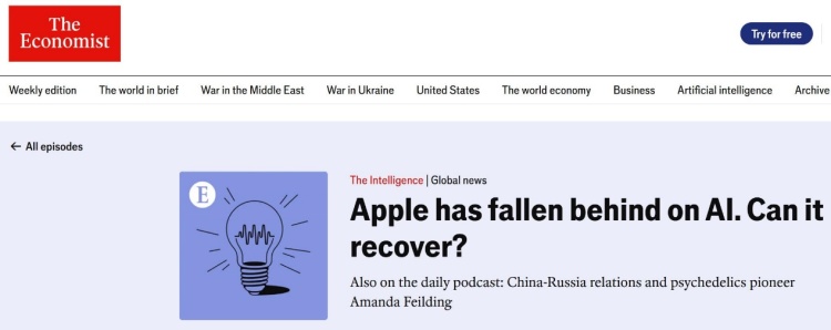【环球网科技综合报道】6月11日消息,据《经济学人》报道,尽管苹果仍可通过生产昂贵产品赚取了丰厚利润,但它在人工智能的发展上却遇到了难题。